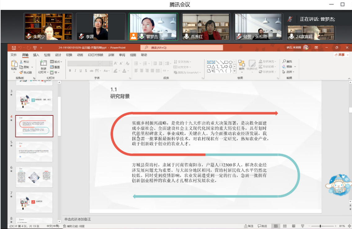 2022年11月19日,世界杯体育官方网站2023届农林经济管理专业按照《世界杯体育官方网站2023届本科毕业论文开题答辩实施方案》的要求,进行了开题答辩,由于疫情原因,答辩采取线上形式举行,共分为3个答辩小组,91名同学参加了开题答辩。