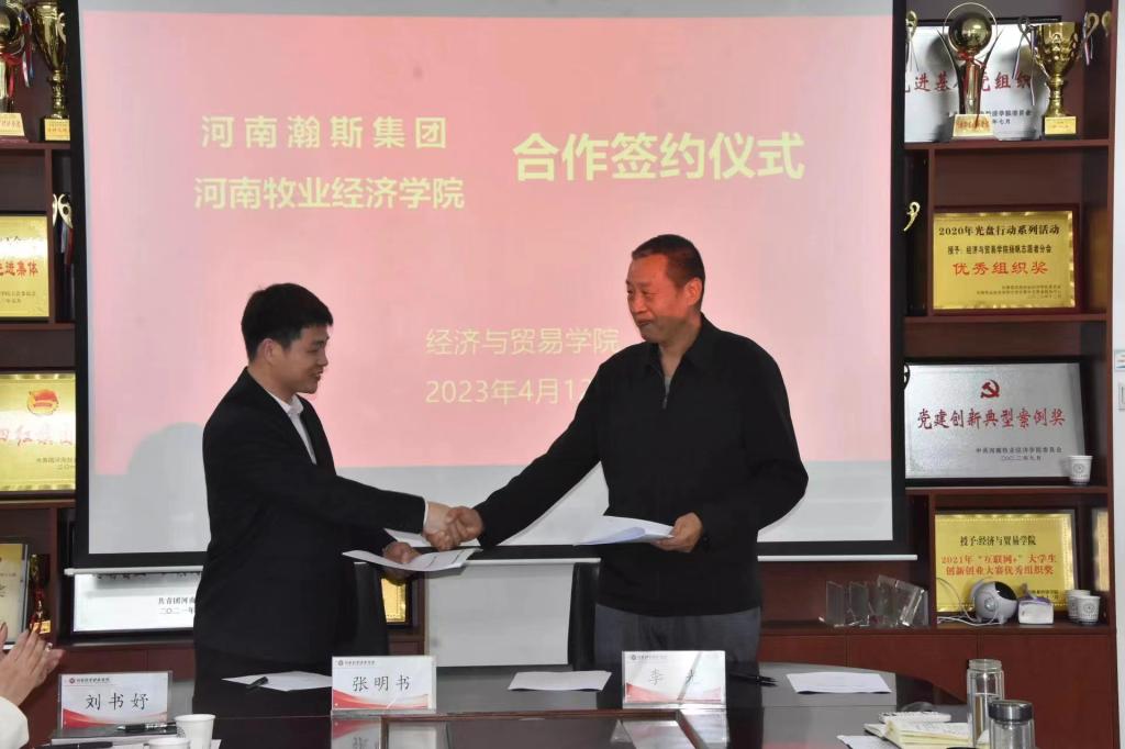 2023年4月12日,世界杯体育官方网站与河南瀚斯集团相互授牌并签约合作会议于英才校区教学办公楼327会议室召开。院党委书记张松刚,院长李光,副书记贾艳艳,副院长梅星星、杜玲,教研室主任吴静、尚静、郑泽华等教师列席会议。瀚斯集团运营总监张明书,公司主任霍振同、人力资源主管刘书妤、财务主管王紫逸、新媒体运营范玉东、证件资源专员杨倩雯等企业管理人员参加了本次会议。