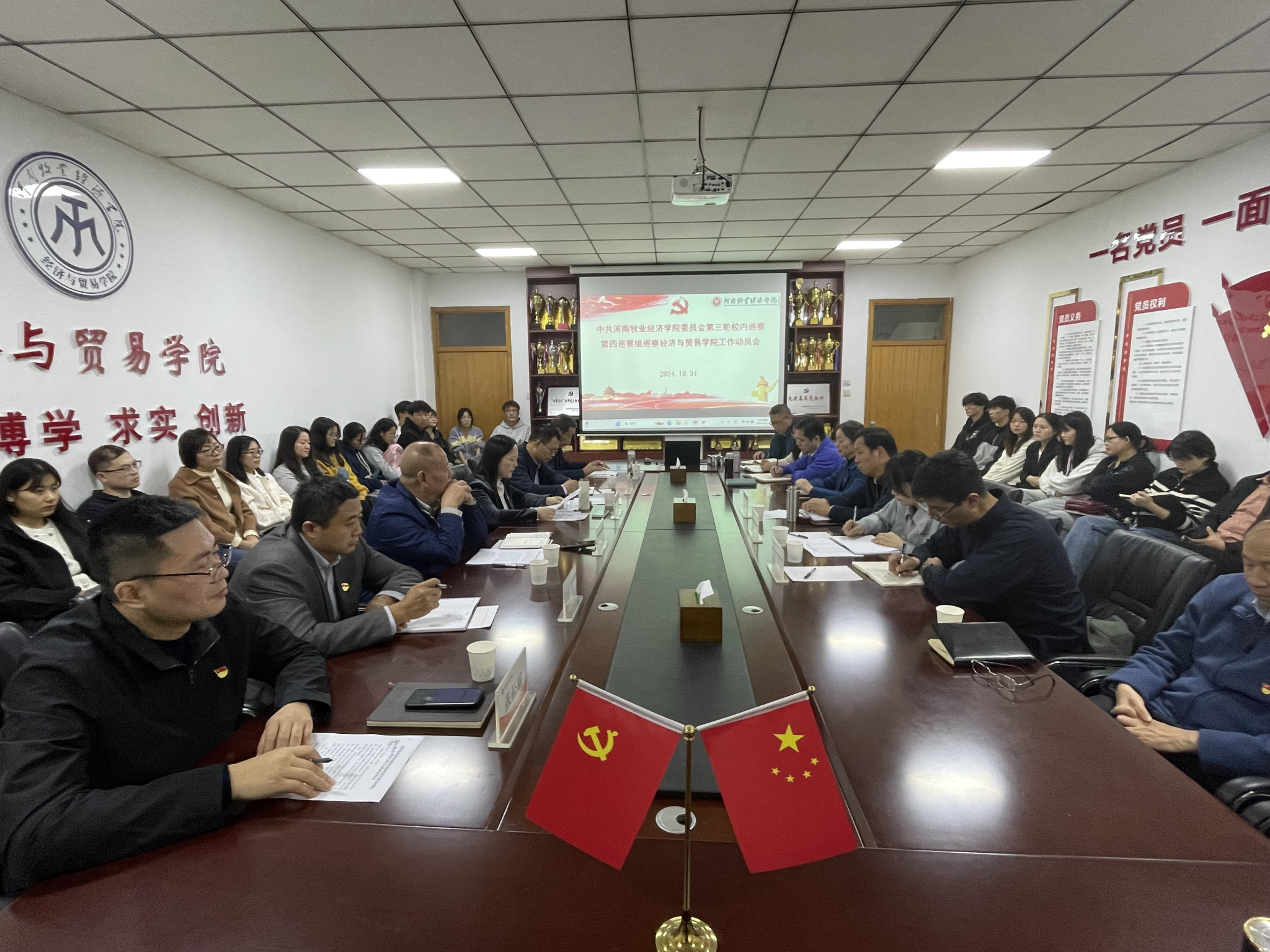 按照校党委第三轮校内巡察工作的部署和要求,根据《中共河南牧业经济学院委员会巡察工作暂行办法》、《河南牧业经济学院党委第三轮校内巡察工作实施方案》文件精神,10月31日下午,校党委第四巡察工作组巡察世界杯体育官方网站党委动员会在英才校区教学办公楼327会议室顺利召开。校党委巡察工作领导小组成员、党委巡察办公室主任马佩英,第四巡察组组长胡蕾,副组长陈明、陈永刚,成员付云、刘超、郝哲出席会议。世界杯体育官方网站党政领导班子成员、科级及以上干部、教研室主任、党支部书记、党外人士代表、教师代表和学生代表参加会议,大会由世界杯体育官方网站院长李光主持。