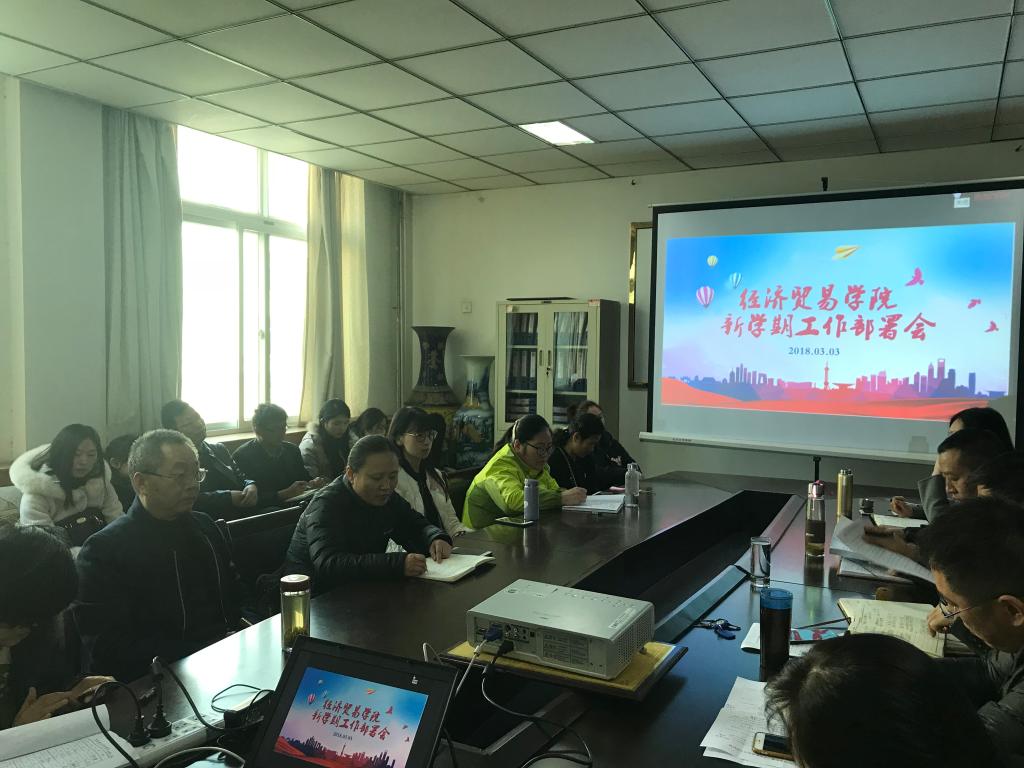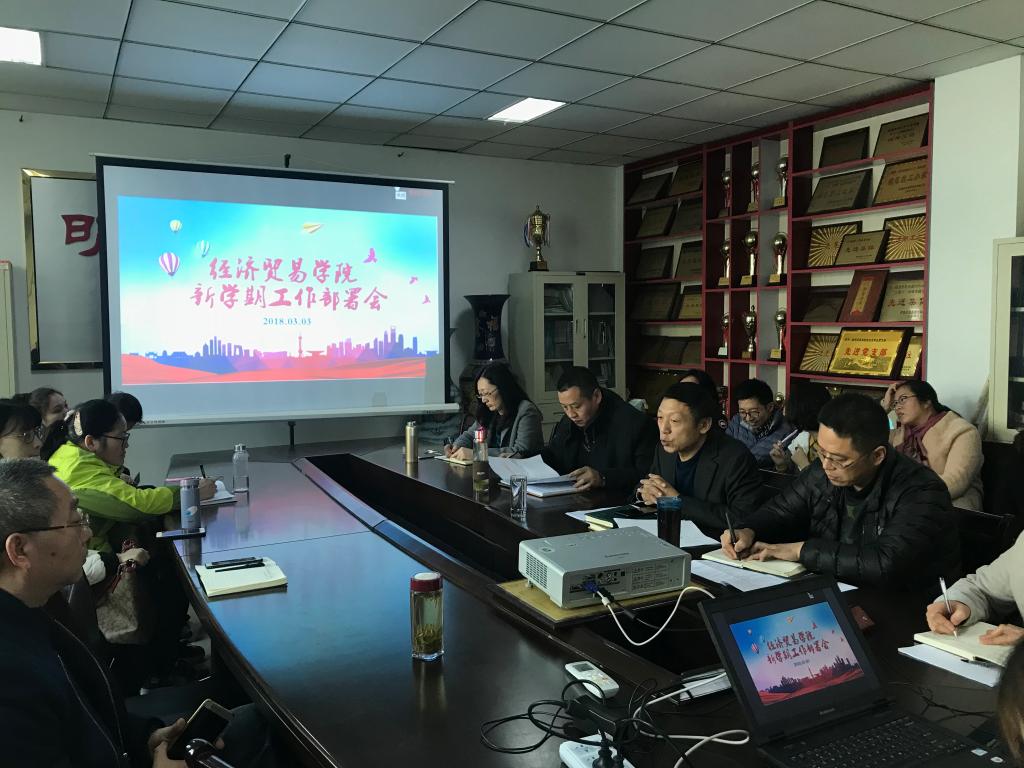 为贯彻落实校党委的工作部署,保障新学期各项工作的稳步推进,经济贸易学院于3月3日下午在英才校区教学办公楼216会议室召开全体教工大会,对各项工作进行了全面部署。会议由学院党总支书记牛建绥主持。