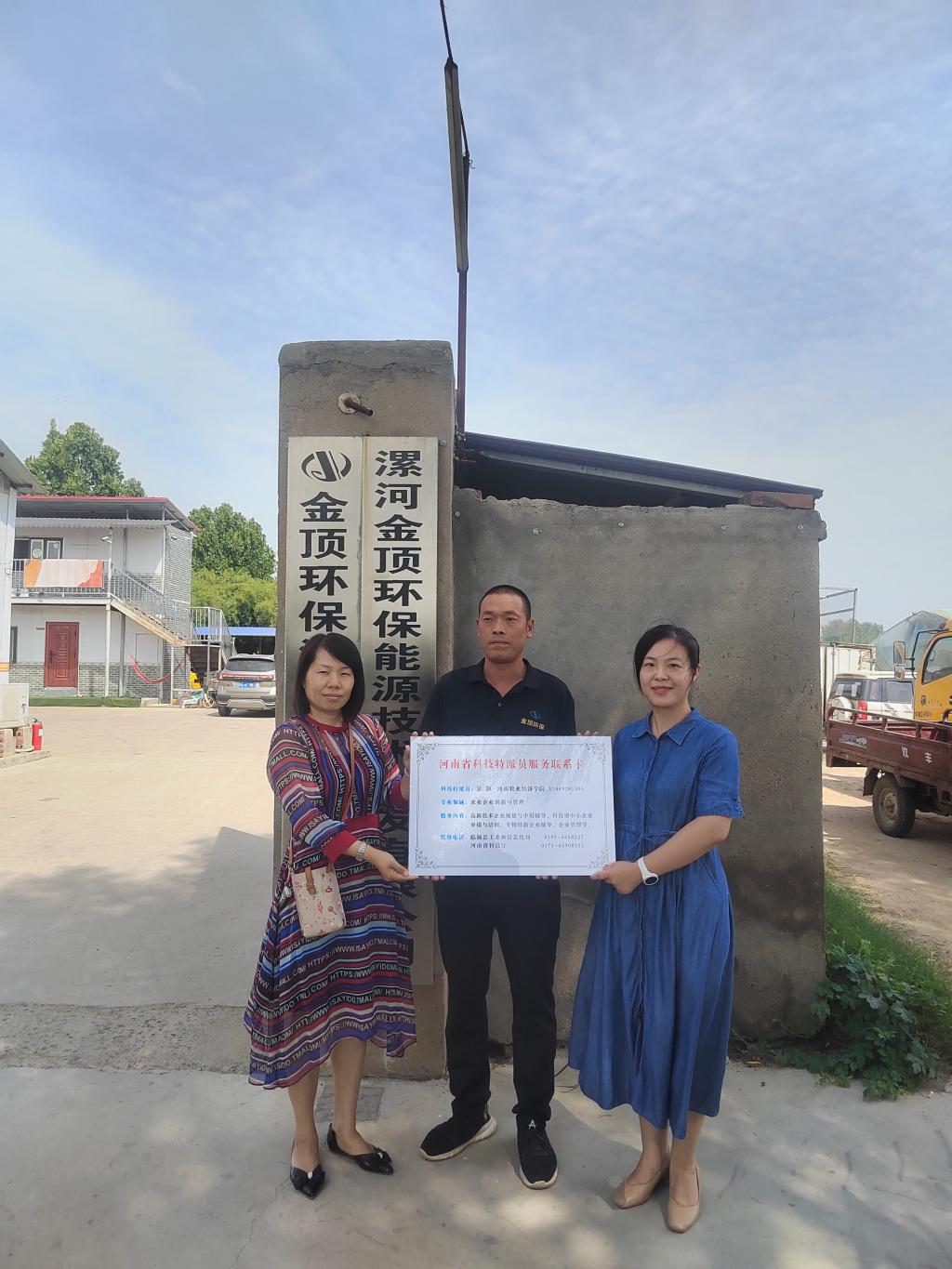 为积极推进我校“百名专家助百村(企)”工程(“双百”工程)实施,2022年9月19日,世界杯体育官方网站科技特派员吴静博士赴临颍县漯河金顶环保能源技术开发有限公司开展科技服务,助力受援单位提升企业管理与科技创新能力。