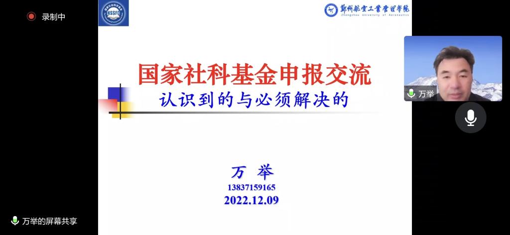 2022年12月9日下午,世界杯体育官方网站通过线上会议的方式组织召开了2023年度国家社科基金项目申报经验交流会。本次会议邀请了郑州航空工业管理学院硕士生导师万举博士进行国家社科基金申报经验分享,科学技术处副处长张红霞、物流与电商学院副院长李艳菊、世界杯体育官方网站院长李光、副院长杜玲、孙晓林、科研办公室主任以及世界杯和兄弟院系五十余位教师参加了本次会议。会议由李光院长主持。