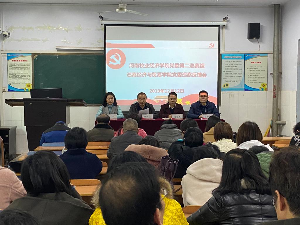 按照校党委巡察工作部署,2019年12月12日下午,校党委第二巡察组巡察世界杯体育官方网站巡察反馈会在英才校区教学楼A102室召开。学校第二巡察组组长顾国超、副组长赵贺然、成员梁芩、狄波出席会议,经贸学院领导班子成员及学院全体教师参加会议,会议由经贸学院党委书记张松刚主持。