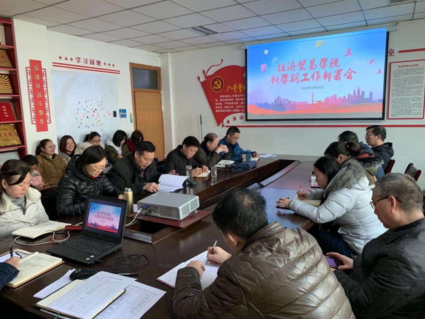 为贯彻落实校党委的工作部署,保障新学期各项工作的稳步推进,经济贸易学院于2月23日上午午在英才校区教学办公楼216会议室召开全体教工大会,对各项工作进行了全面部署。会议由学院党总支书记牛建绥主持。