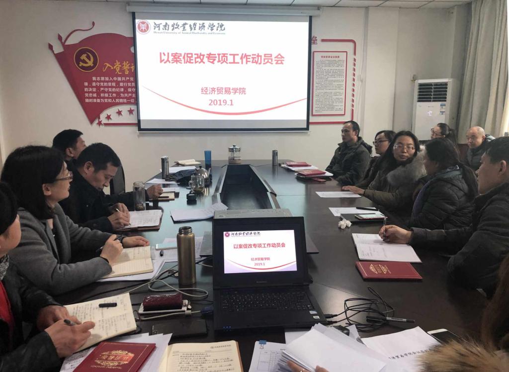 按照学校党委“以案促改”工作安排要求,1月19日下午,经济贸易学院在英才校区教学办公楼216会议室召开“以案促改”动员会,学院全体教工参会,会议由党总支书记牛建绥主持。