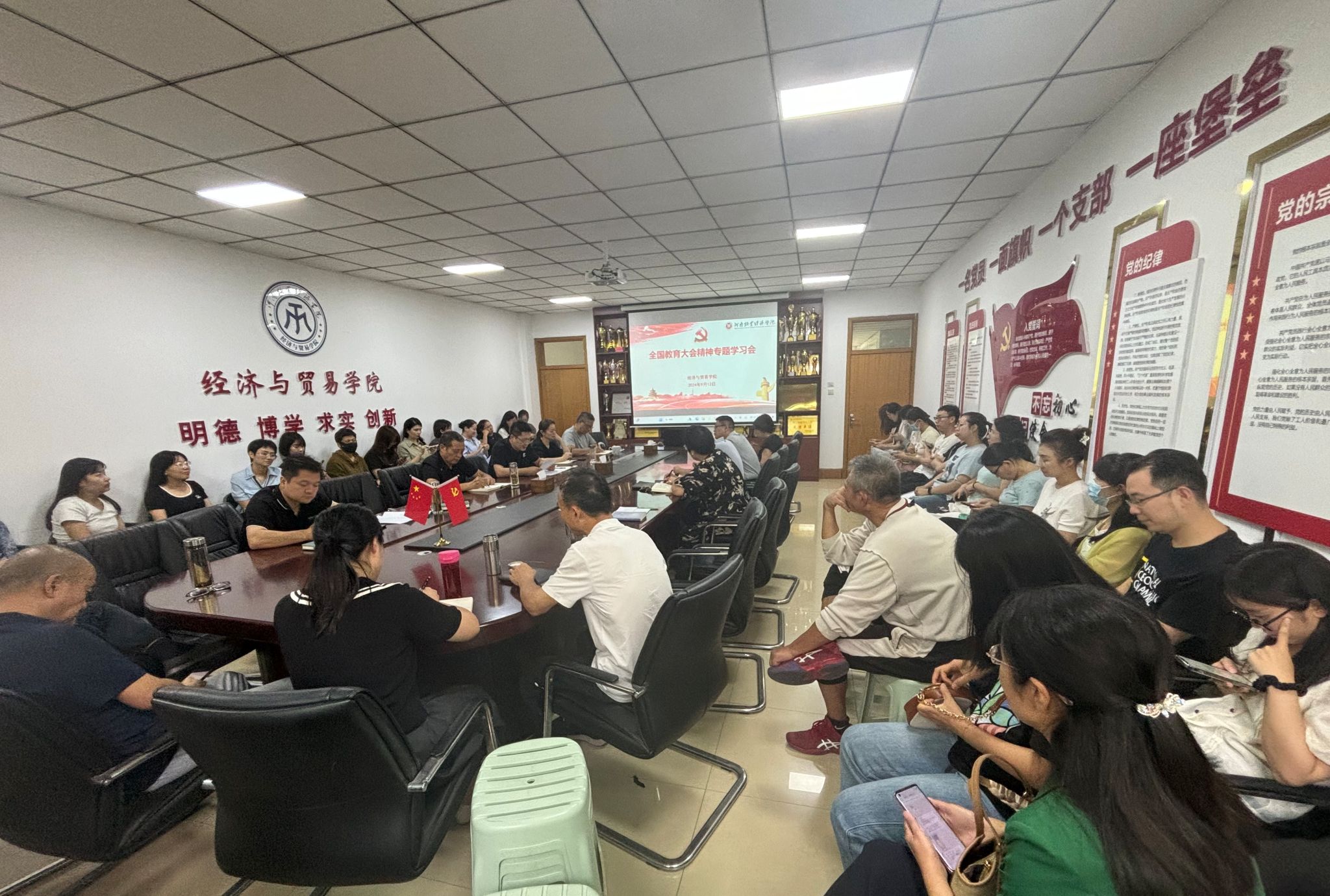 9月12日下午,世界杯在英才校区教学楼327会议室召开全国教育大会精神专题学习会,集体学习了习近平总书记在大会上的讲话精神,全体教职工参会。会议由院党委书记张松刚主持。