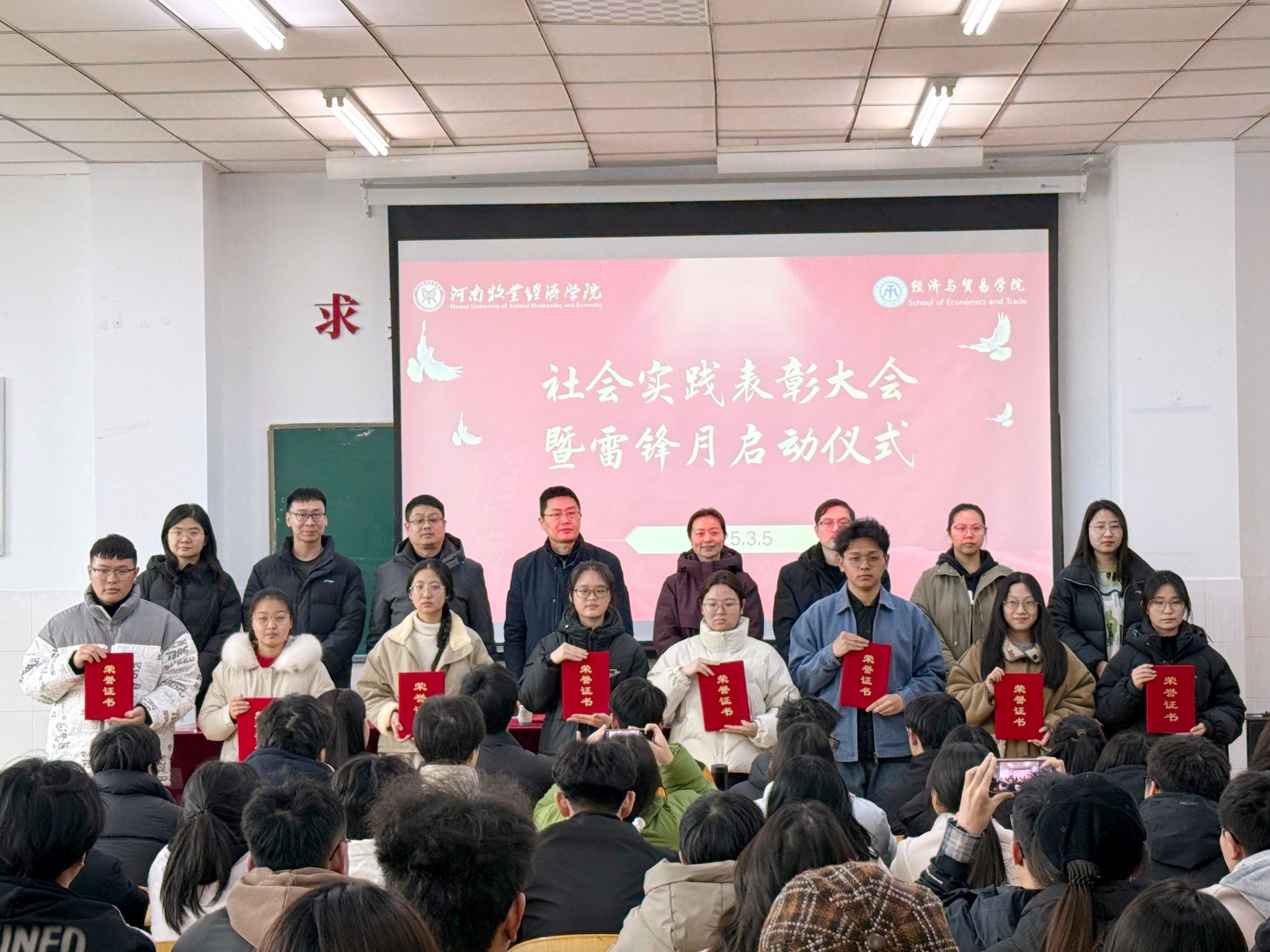 会议伊始,贾艳艳书记宣读了世界杯体育官方网站关于开展“传承雷锋星火,书写青春答卷”学雷锋志愿服务月的通知以及2025年寒假社会实践先进个人与集体名单。随后由各位领导为他们颁发证书并合影留念。接着,刘佳楠老师宣读了学雷锋志愿服务月活动方案,部署雷锋月的相关安排,引导同学们从自身做起,从小事做起,展现经贸学子志愿服务的风采。