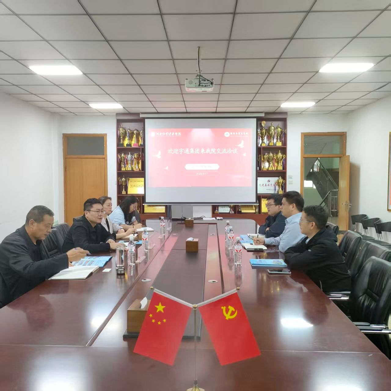 张书记则围绕学生普遍关注的职业发展、薪资、工作环境等就业问题与宇通集团代表进行了沟通,并提出“企业引进来”与“师生走出去”相结合的模式,建议通过企业宣讲、在企毕业生现身说法、实习参观、企业导师开展职业规划指导等多种形式,帮助学生更早了解市场、明确职业方向。双方一致同意于本周内组织开展专场宣讲会,并逐步推动在党建联动、实习基地建设、职业导师选派等方面的深度合作。