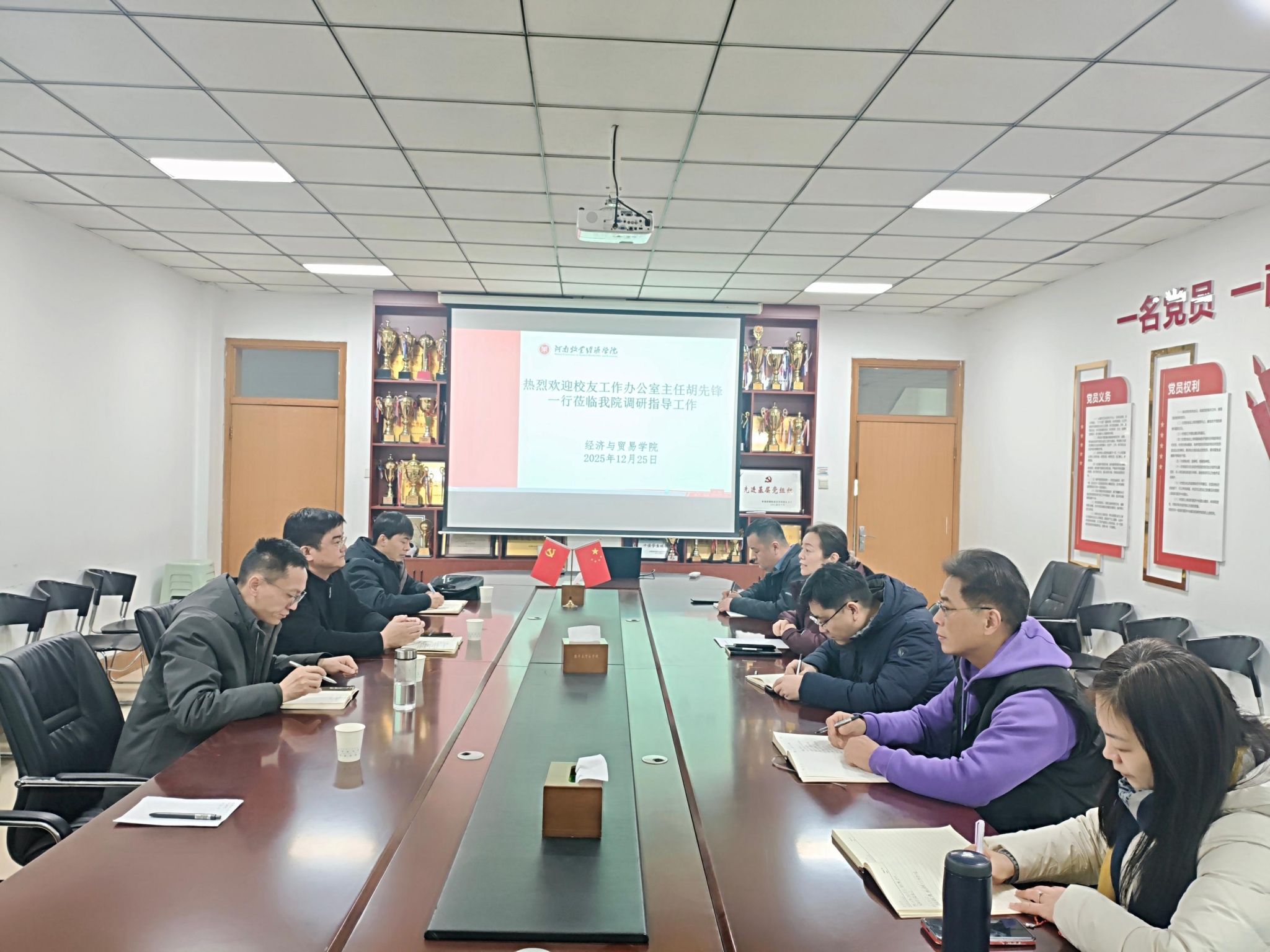 为深入了解世界杯体育官方网站校友工作的发展状况,提升校友工作质量,12月25日,校友工作办公室主任胡先锋,副主任周延洲、刘博,综合科科长霍永一行莅临世界杯体育官方网站,专题调研并指导学院校友工作。院党委书记贾艳艳、院长韩启昊、党委副书记孟昱龙、副院长孙晓林和吴静参加调研座谈。会议在英才校区教学办公楼327会议室举行。